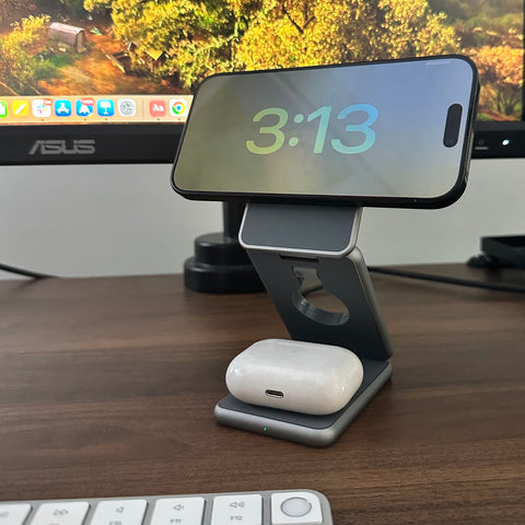 3-in-1 Wireless Charging Station for iPhone, AirPods & Apple Watch – Fast Nightstand Charger Dock