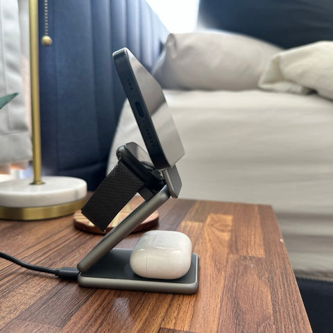The 3-1 Charger makes for the perfect work accessory for your desk and can fold for a compact travel fit.