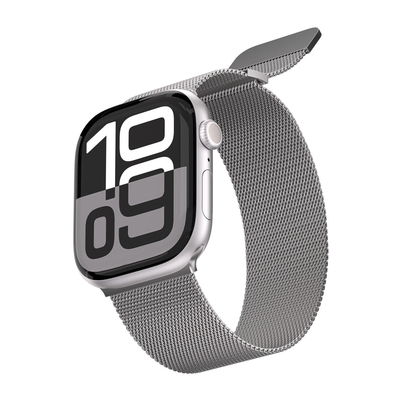 Note: Apple® and Apple Watch® are trademarks of Apple Inc. This is a third-party Milanese band compatible with the Series 10.