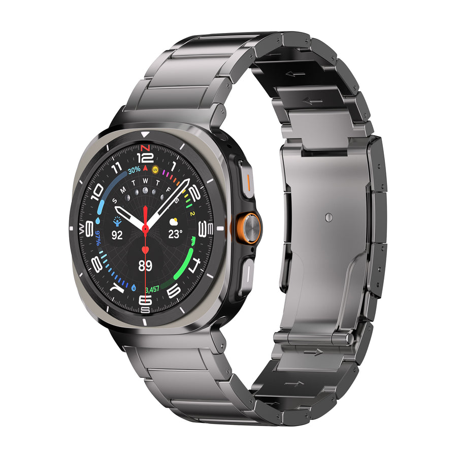 Available in three colorways—Titanium Gray, Titanium Silver, and Titanium Black—our band is specifically designed to seamlessly match the three case finishes of the Samsung Galaxy Watch Ultra. Whether you're heading to work, the gym, or an outdoor adventure, this band enhances your watch’s style without compromising functionality.