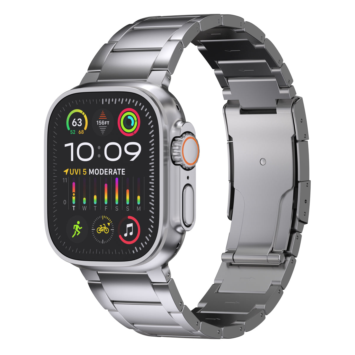 Crafted from real Titanium, the bracelet is lightweight while being strong and durable, with a perfect color to match the Apple Watch Ultra 3/2/1. The adapters are precise 49mm size made specifically to fit the Ultra case